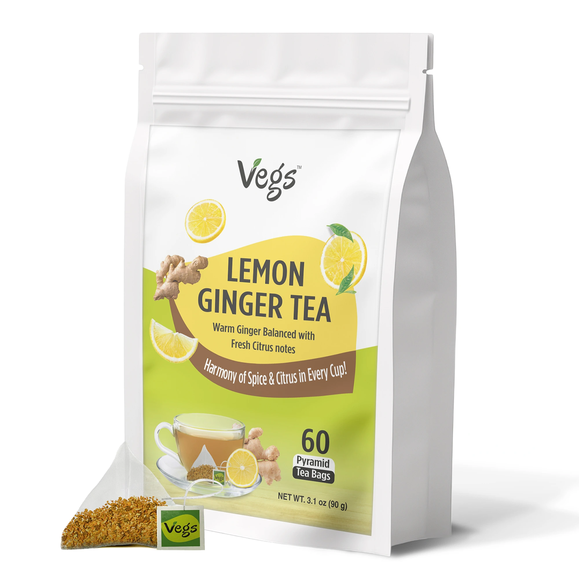 Buy lemon ginger tea from VEGS brand lemon ginger tea collection. Our herbal lemon ginger tea and lemon and ginger tea come in premium lemon ginger tea bags. Enjoy refreshing ginger lemon tea, lemon herbal tea, lemon zinger tea flavor and natural lemon ginger tea benefits daily.