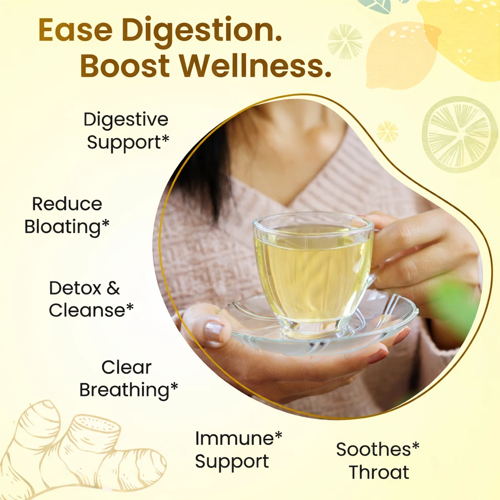 Lemon Ginger Tea helps support digestion, boosts immunity, and provides a refreshing natural flavor. It is commonly used to reduce bloating, improve metabolism, and promote overall wellness.