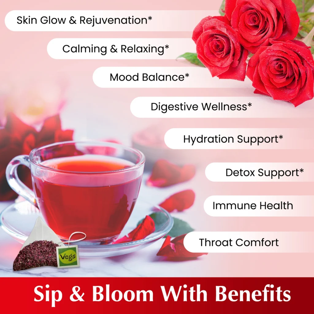 Enjoy premium rose petal tea made with single-ingredient organic rose petals. This caffeine-free organic rose tea offers gentle daily wellness and natural floral refreshment. Discover rose petal tea benefits, including rose petal tea benefits for skin. Shop brand rose petal tea and buy rose petal tea bags online.