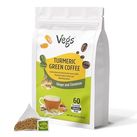 Discover Turmeric Green Coffee, a premium antioxidant-rich blend with Arabica coffee, turmeric, ginger, and cinnamon. Enjoy smooth natural energy and focus in convenient pyramid bags. Explore turmeric green coffee benefits as part of daily wellness. Shop now and buy turmeric green coffee online.